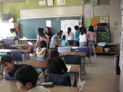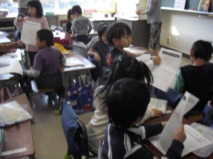 朝の会の前に・・・“1年生に読み聞かせ”をしたお礼のカードを見て・・・