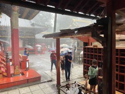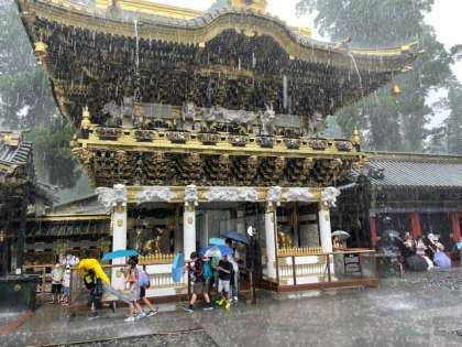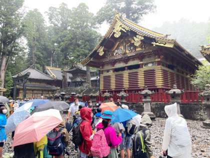 東照宮に着き、記念撮影をするあたりの時間に、雨が降り出しました。しかも、ものすごい雨で、東照宮の方も、こんなに降るのは珍しいとおっしゃっていました。
