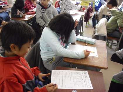 “朝 学習:算数プリントに挑戦!”基礎を大事にしています。