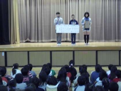 今朝は、“ユニセフ集会”を体育館で行いました。今回は、ユニセフ募金と東日本大地震の被災地に向けての募金を行います。