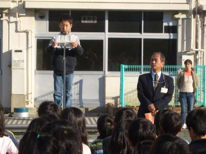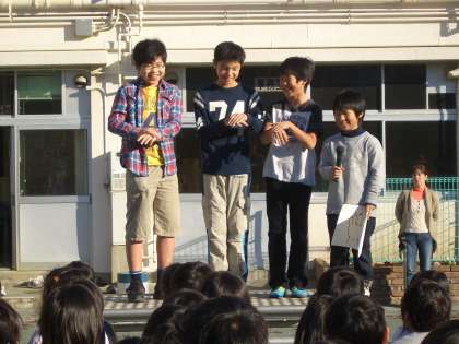 そのあと、海外派遣の児童の話、4年生のエコ隊の話、保健委員会の話、九品仏コンサートの出演者の募集の話がありました。