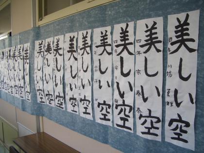 4年生は、「美しい空」字のバランスを考えて書き上げました。