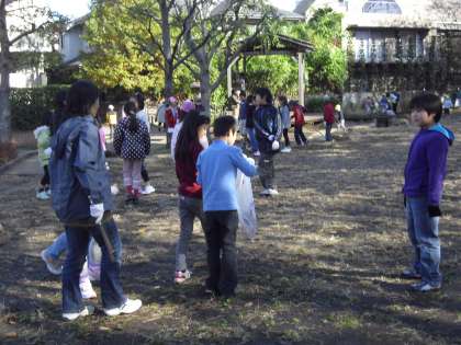 3・4年生は、“ねこじゃらし公園”です。縦割りの中学年の仲間が協力しながら、清掃活動です・・・。