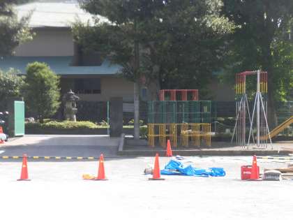 久しぶりに、職員室から稲や滑り台・ジャングルジム・登り棒が良く見えます。