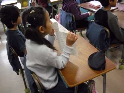 “朝の会”・・・日直の話・・・1時間目の準備をして聞いています。