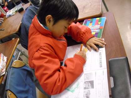 4年生・・・朝の会の前に・・・朝 自習・・真剣な顔でした。