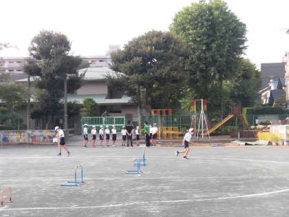 多くの先生方にご協力をいただき、ハードル走・100m走・走り幅び・走り高跳びに分かれて練習を行いました。