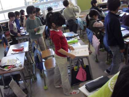 “音読:国語の教材・詩:ピンときた!”です。準備も早い子どもが増えています。