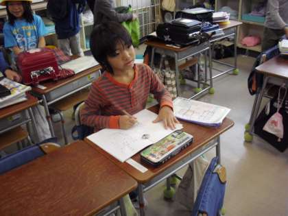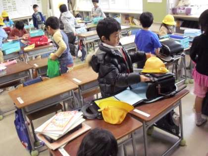 始業前・・・カバンから学習用具を机の中に・・・・ランドセルは、ロッカーへ・・・