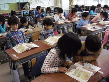国語の学習・・・教科書を真剣に読んで・・・担任の先生の質問に答えています。