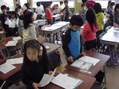 計算プリントやノートなどを進んで係の子が配布していました。