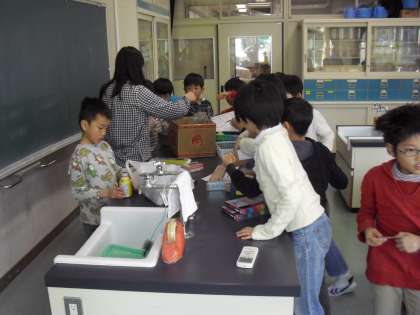 “理科:豆電球のつきかた”の実験が始まるところです・・・。