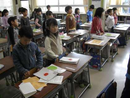 朝の音読が終わり・・・朝の会・・・あいさつ・・・みんなの協力で早くできました。