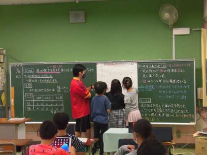 理科の学習では、自分たちの実験結果を分かりやすいシールをグラフに貼っています。