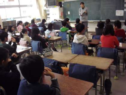朝の会の先生の話・・・予定について確認しています。保健係の人が・・・出席表を所定の場所へ持っていきます・・・・。