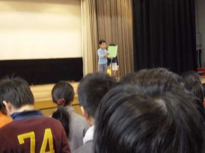 画面は、終業式の“児童代表の言葉”です。1年生の代表・・・“校歌斉唱”では、6年生の児童がピアノ伴奏を・・・・