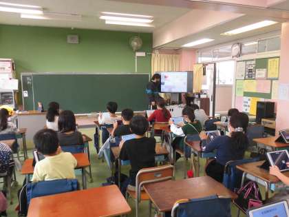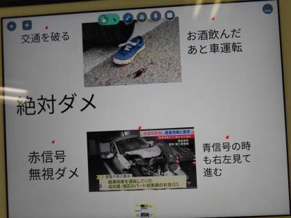 完成したら、先生に送り、テレビに映しみんなで情報を共有しました。