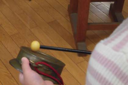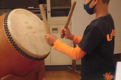 今日は、音楽室で和太鼓や鐘などの演奏練習を行いました。