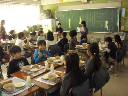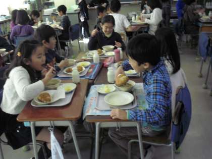 栄養士さんが毎日献立メニューを印刷してくれます。当番さんが“”今日の献立メニュー”をみんなに紹介していました。