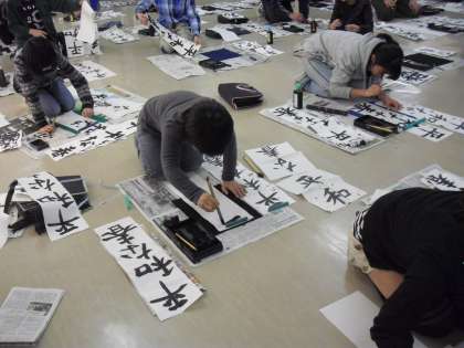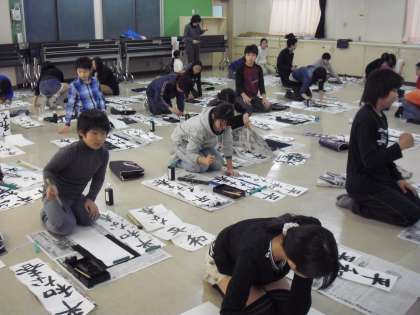 6年生は、“書き初め”をしていました。“平和な春”をお手本を見て真剣に書いていました。来週から、“校内書き初め展”が始まります。