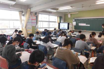外国語の授業では、音声を聞いて、どんなことが分かったか話し合っています。