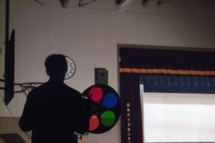 今日は、ことばの教室の先生方が照明係として、舞台の上の子どもたちにスポットライトを当ててくださいました。