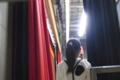 舞台裏では、ドキドキした表情で舞台の上の仲間たちの演技を見つめています。