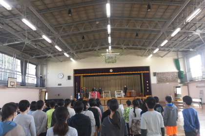 5時間目は、5年生と専科の先生・ことばの教室の先生・主事さん方と学芸会の片づけを行いました。最後は先生方にお礼を伝えてくれました。