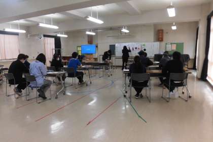 いつもは教える側の先生方が、今日は児童役として模擬授業を受けています。