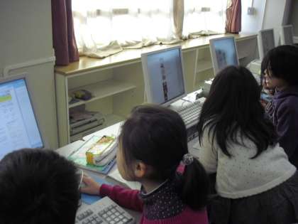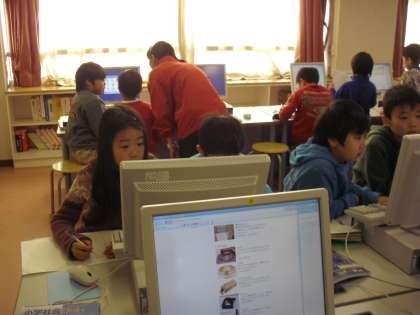 “社会科:むかしのくらし”パソコンルームで・・・昔使っていた生活用品などについて調べていました。たらいや洗濯板・・・絞り機がついた洗濯機・・・やぐら式炬燵・・