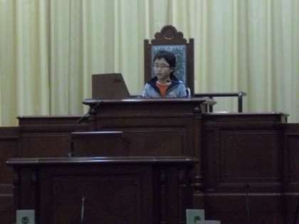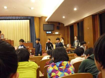 国会議事堂参議院模擬体験プログラム・・・読書法案の模擬体験をしました。参議院の議員役の3校の子どもの素直な投票・・・賛成119票 反対96票 で可決!