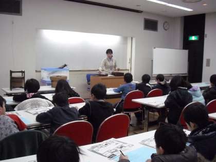 社会科見学で、“世田谷郷土資料館・代官社会科見学屋敷:次大夫堀公園:世田谷市場”へ行きました。画面は、世田谷郷土資料館の見学の様子です。