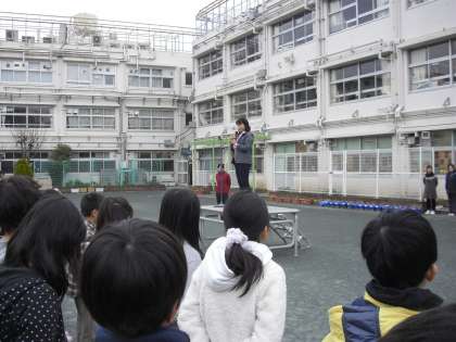 1月23日(月)穏やかな九品仏:全校児童朝会