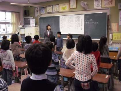 入学式に2年生として・・・歓迎の出し物をします。“校 歌”も歌います。今日から、練習を始めました。余裕をもって進めています。日直の子どもが席をたつときに・・