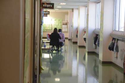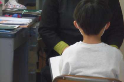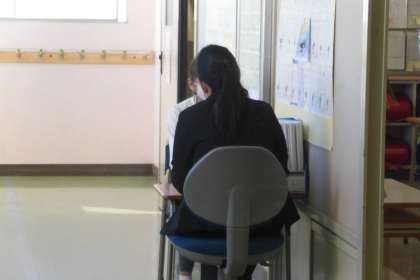 2学期の頑張りを通知表を手にしながら先生方とお話をしています。