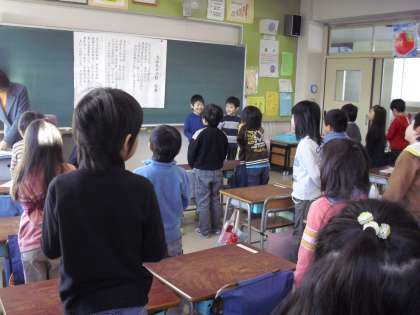 校歌の練習・・・あいさつ・・・・姿勢がたいへん良くなってきました。2年生へ向けて・・・着実に成長しています。