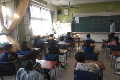 外国語の学習では、歌をうたいながら、英語のフレーズを楽しく学びました。