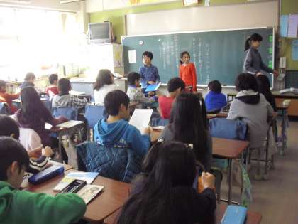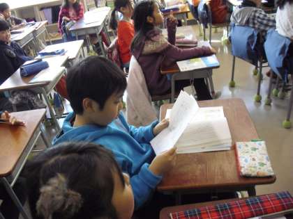 朝の会・・・先生の話・・・“寒い日が続いていて・・風邪やインフルエンザなどが心配されます。手洗いやうがいをして・・・予防しましう!休み時間の教室の喚起も・・”など