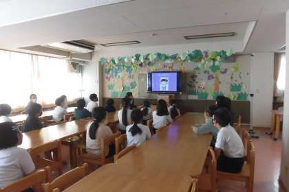 発育測定の前には、保健室の先生から心の授業が行われました。