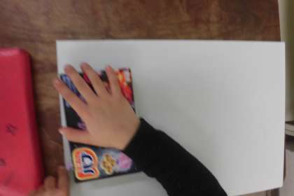 算数科の学習では、箱の面をA3サイズの紙に描き写しています。