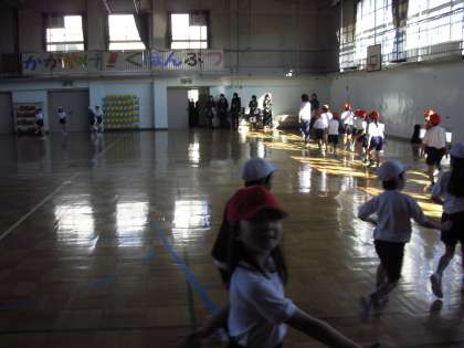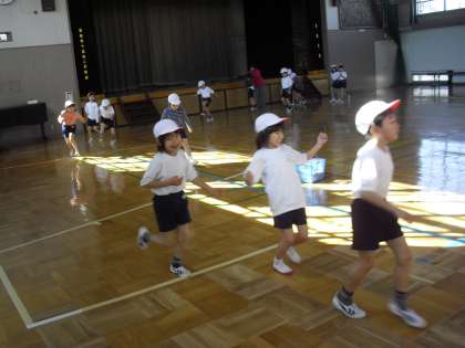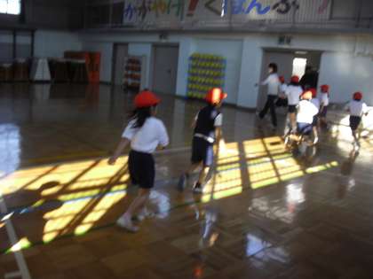 “体育”・・・いろいろな走りかた・歩き方・・・・身体を温めて・・・