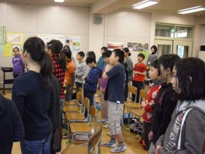 1時間目は、“専科授業:音楽”発声練習・・・♪少年の日はいま♪ 卒業式で歌う歌を久々に歌いましたが・・・きれいな歌声です。♪