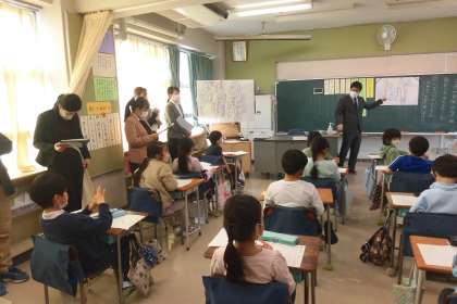 担任の先生が「先生も緊張しています。」と話すと、一気に緊張が解けた様子の子どもたち。授業が始まると、意見をたくさん出し合い、活発な授業となりました。