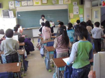 今朝も“音読:いしっころの詩”・・・リーダーがすぐに前に・・・教科書の準備も早くできるようになっています。