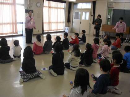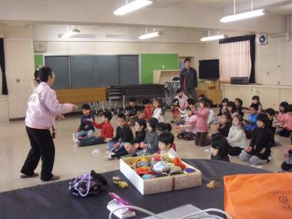 “生活科で昔あそびをしよう”・・・地域の方々をゲストティチャー“等々力児童館長、日本のお手玉の会の方々”にお手玉やコマ回しを教わりました。