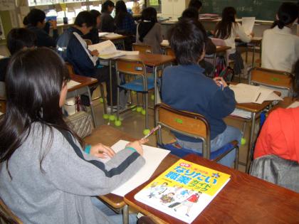 右画面は、6年生。「将来の私・僕」“なりたい職業”について・・・。画面は、担任から“今現在、将来こんな職業になりたい”と思っていることを書いてください・・と説明を受けているところです。
