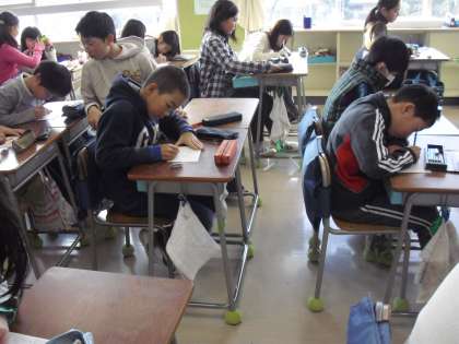 朝ミニ漢字テストに挑戦! 3学期の漢字ミニテストの合格者は・・・もう一度スタートから繰り返して取り組みます。時間には、進んで自分の進度のテストに取り組んでいます。
