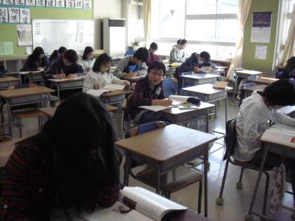 “国語:猿橋 勝子”の学習風景・・・ワークシートの課題を教科書をよく読んで取り組んでいました。