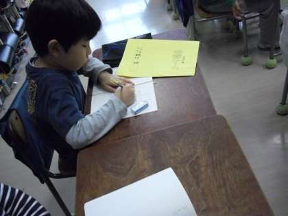 帰りの会の前の様子です。配布物や明日の予定を書き込んだりしています。