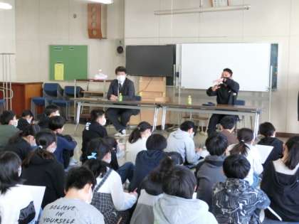 昨日の6年生のキャリア教育では、社会福祉協議会の方と2時間目に2年生の体育の授業でお世話になった本校卒業生のお二人に職業についてのお話を伺いました。